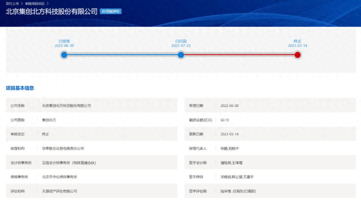 集创北方曾于2022年6月申报科创板 IPO 并获受理,于2023年3月主动撤回IPO 申请。前次IPO,集创北方拟募资60.1亿元,在2022年7月进行了第一次问询。